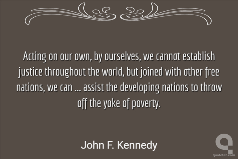Acting on our own, by ourselves, we cannot establish justice throughout the world, but joined with other free nations, we can ... assist the developing nations to throw off the yoke of poverty.