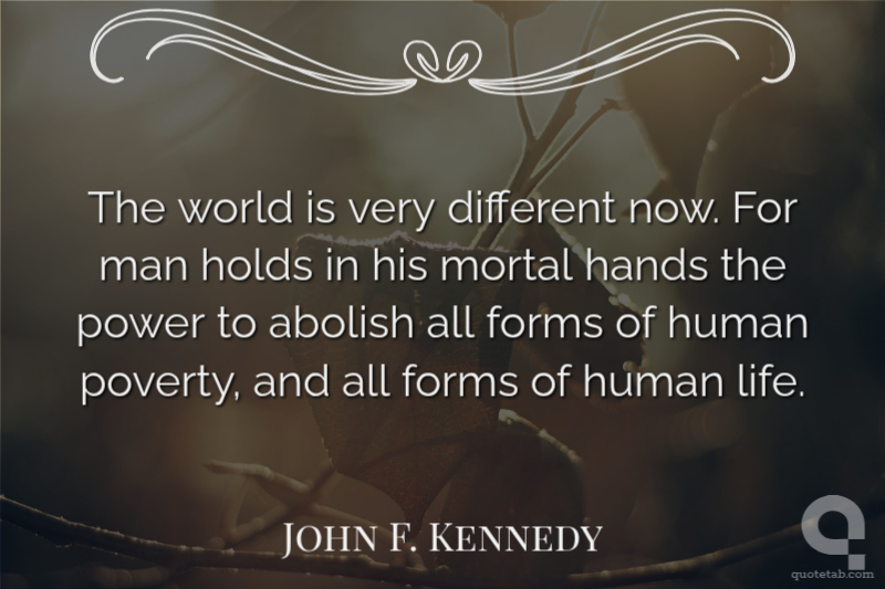 The world is very different now. For man holds in his mortal hands the power to abolish all forms of human poverty, and all forms of human life.