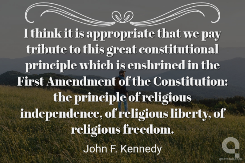 I think it is appropriate that we pay tribute to this great constitutional principle which is enshrined in the First Amendment of the Constitution: the principle of religious independence, of religious liberty, of religious freedom.