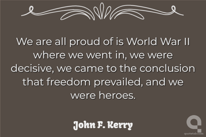 We are all proud of is World War II where we went in, we were decisive, we came to the conclusion that freedom prevailed, and we were heroes.