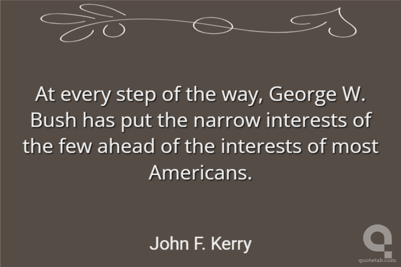 At every step of the way, George W. Bush has put the narrow interests of the few ahead of the interests of most Americans.