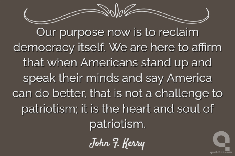 Our purpose now is to reclaim democracy itself. We are here to affirm that when Americans stand up and speak their minds and say America can do better, that is not a challenge to patriotism; it is the heart and soul of patriotism.