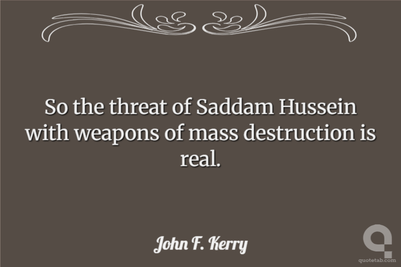 So the threat of Saddam Hussein with weapons of mass destruction is real.