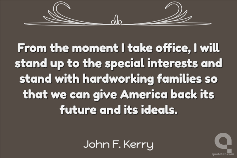 From the moment I take office, I will stand up to the special interests and stand with hardworking families so that we can give America back its future and its ideals.