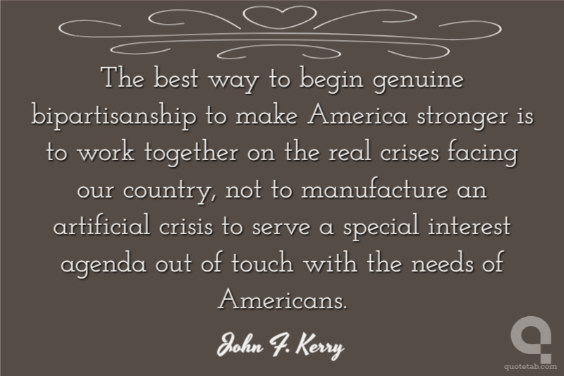 The best way to begin genuine bipartisanship to make America stronger is to work together on the real crises facing our country, not to manufacture an artificial crisis to serve a special interest agenda out of touch with the needs of Americans.