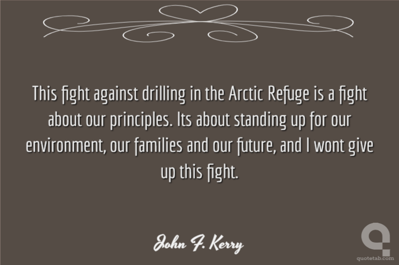 This fight against drilling in the Arctic Refuge is a fight about our principles. Its about standing up for our environment, our families and our future, and I wont give up this fight.