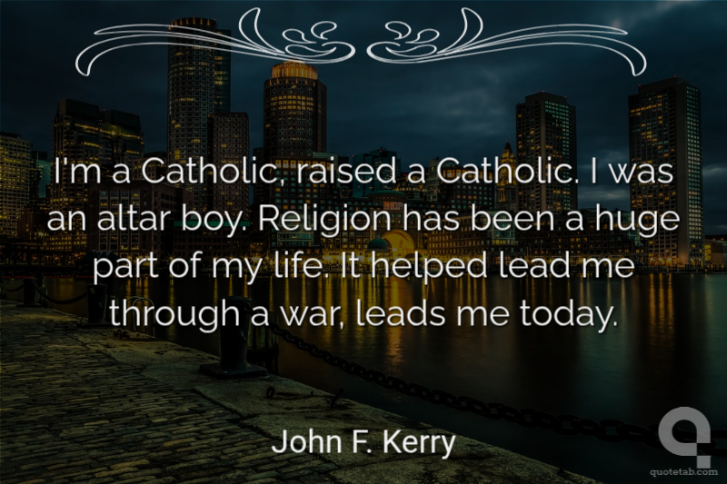I'm a Catholic, raised a Catholic. I was an altar boy. Religion has been a huge part of my life. It helped lead me through a war, leads me today.