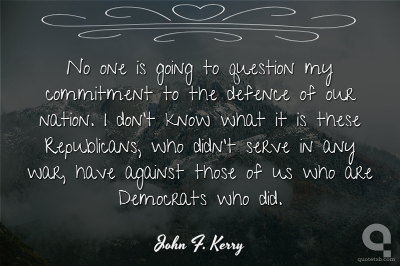 No one is going to question my commitment to the defence of our nation. I don't know what it is these Republicans, who didn't serve in any war, have against those of us who are Democrats who did.