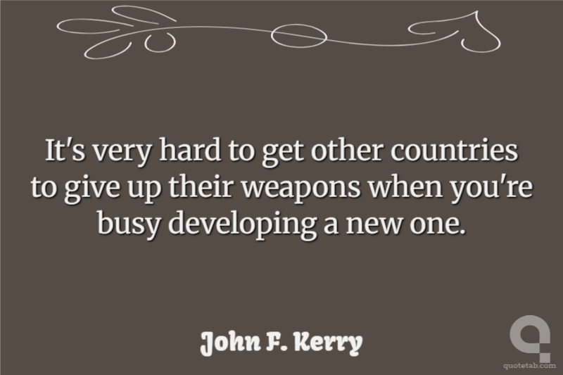 It's very hard to get other countries to give up their weapons when you're busy developing a new one.