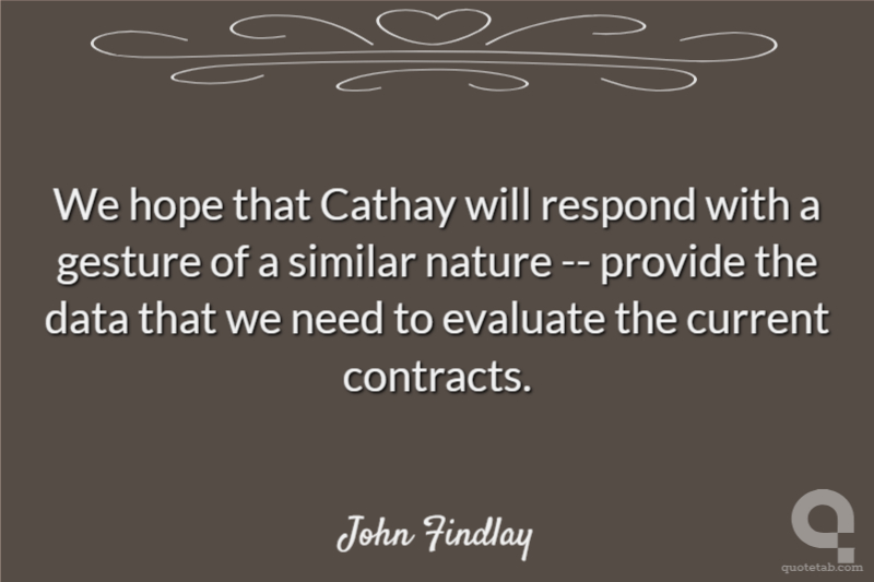 We hope that Cathay will respond with a gesture of a similar nature -- provide the data that we need to evaluate the current contracts.