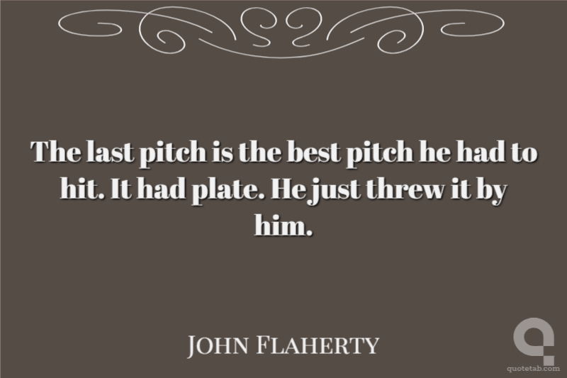 The last pitch is the best pitch he had to hit. It had plate. He just threw it by him.