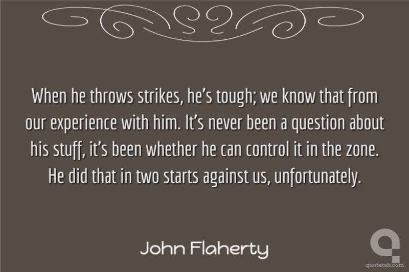 When he throws strikes, he's tough; we know that from our experience with him. It's never been a question about his stuff, it's been whether he can control it in the zone. He did that in two starts against us, unfortunately.