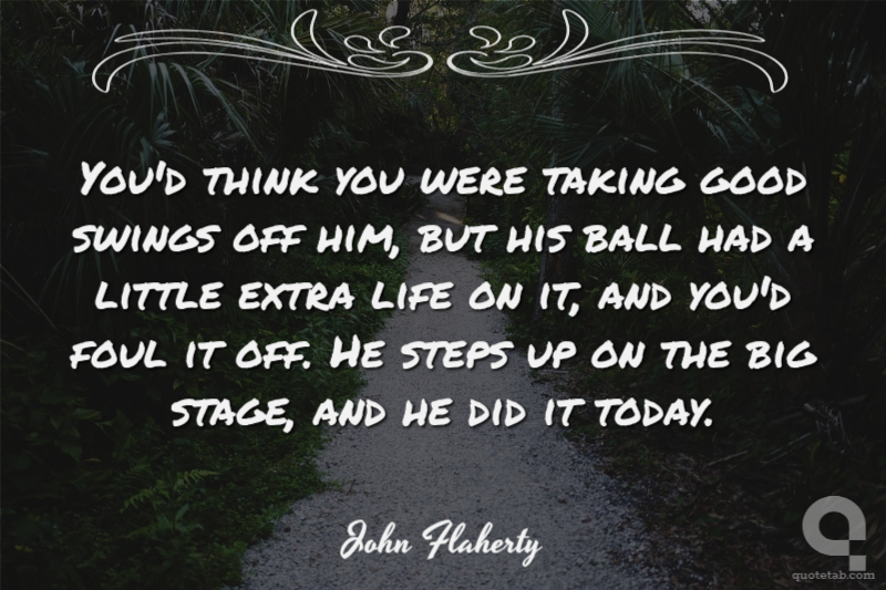 You'd think you were taking good swings off him, but his ball had a little extra life on it, and you'd foul it off. He steps up on the big stage, and he did it today.