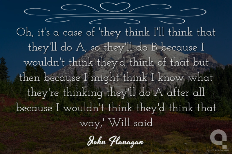 Oh, it's a case of 'they think I'll think that they'll do A, so they'll do B because I wouldn't think they'd think of that but then because I might think I know what they're thinking they'll do A after all because I wouldn't think they'd think that way,' Will said
