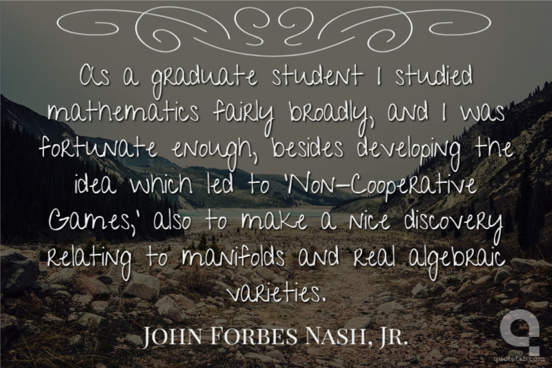 As a graduate student I studied mathematics fairly broadly, and I was fortunate enough, besides developing the idea which led to 'Non-Cooperative Games,' also to make a nice discovery relating to manifolds and real algebraic varieties.