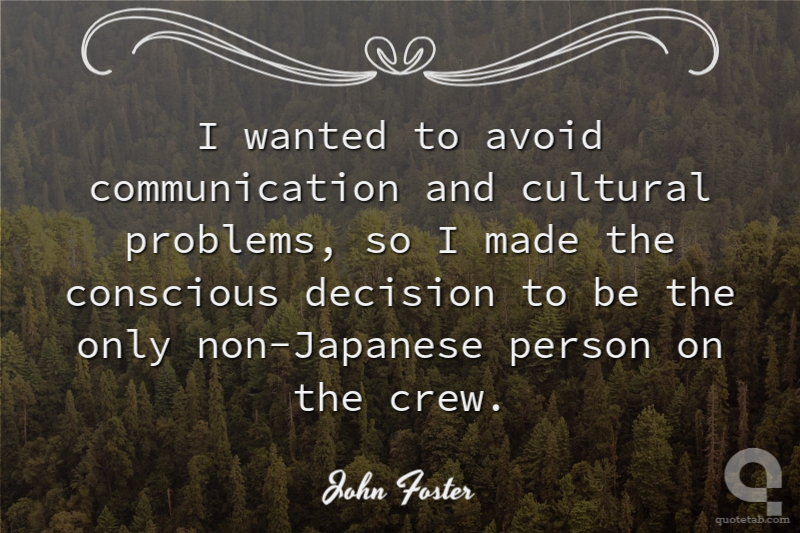 I wanted to avoid communication and cultural problems, so I made the conscious decision to be the only non-Japanese person on the crew.