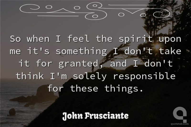 So when I feel the spirit upon me it's something I don't take it for granted, and I don't think I'm solely responsible for these things.