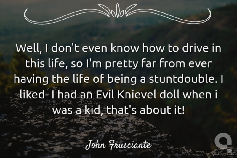 Well, I don't even know how to drive in this life, so I'm pretty far from ever having the life of being a stuntdouble. I liked- I had an Evil Knievel doll when i was a kid, that's about it!