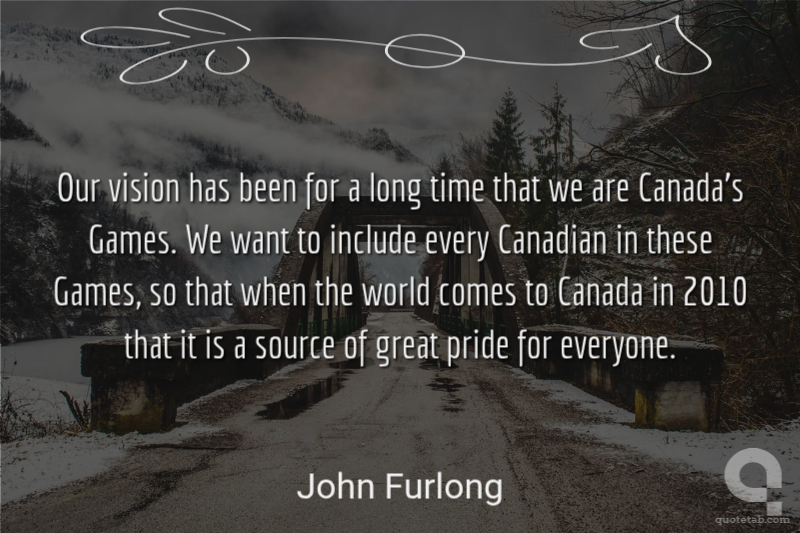 Our vision has been for a long time that we are Canada's Games. We want to include every Canadian in these Games, so that when the world comes to Canada in 2010 that it is a source of great pride for everyone.