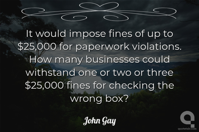 It would impose fines of up to $25,000 for paperwork violations. How many businesses could withstand one or two or three $25,000 fines for checking the wrong box?