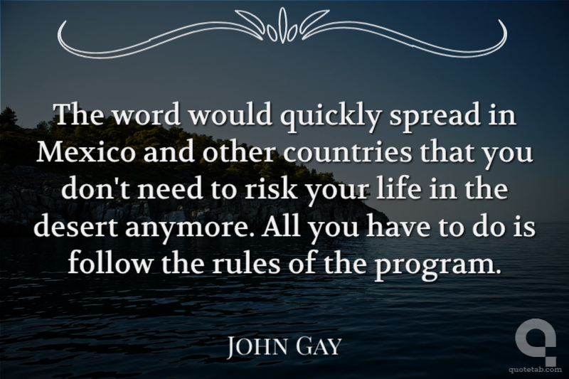 The word would quickly spread in Mexico and other countries that you don't need to risk your life in the desert anymore. All you have to do is follow the rules of the program.