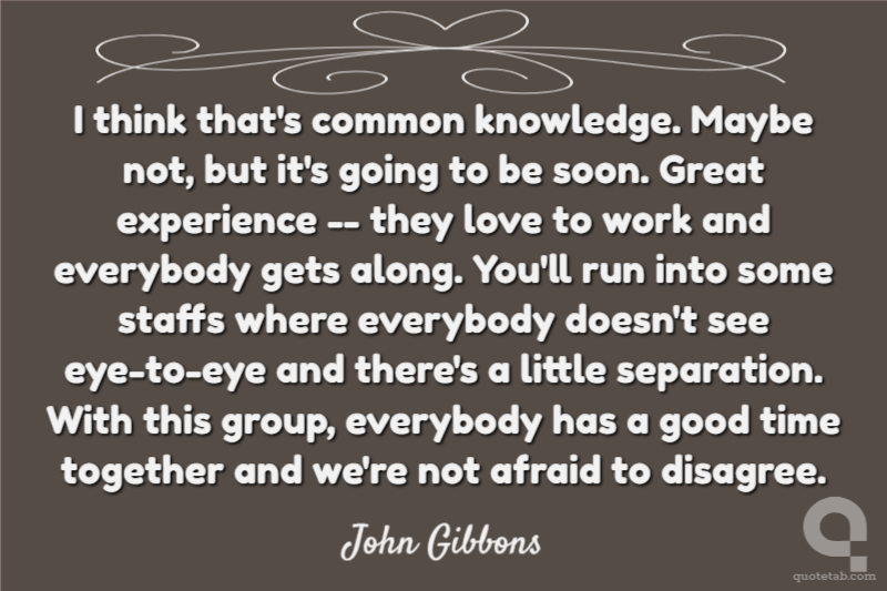 I think that's common knowledge. Maybe not, but it's going to be soon. Great experience -- they love to work and everybody gets along. You'll run into some staffs where everybody doesn't see eye-to-eye and there's a little separation. With this group, everybody has a good time together and we're not afraid to disagree.