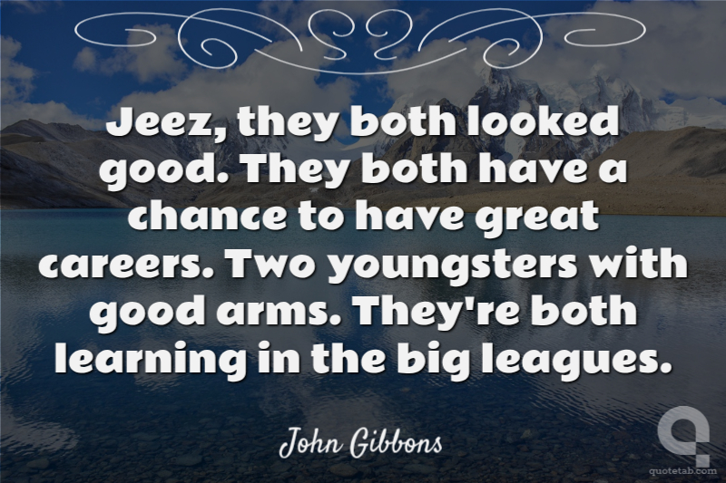 Jeez, they both looked good. They both have a chance to have great careers. Two youngsters with good arms. They're both learning in the big leagues.
