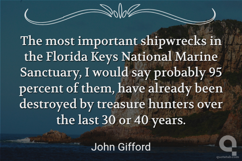 The most important shipwrecks in the Florida Keys National Marine Sanctuary, I would say probably 95 percent of them, have already been destroyed by treasure hunters over the last 30 or 40 years.