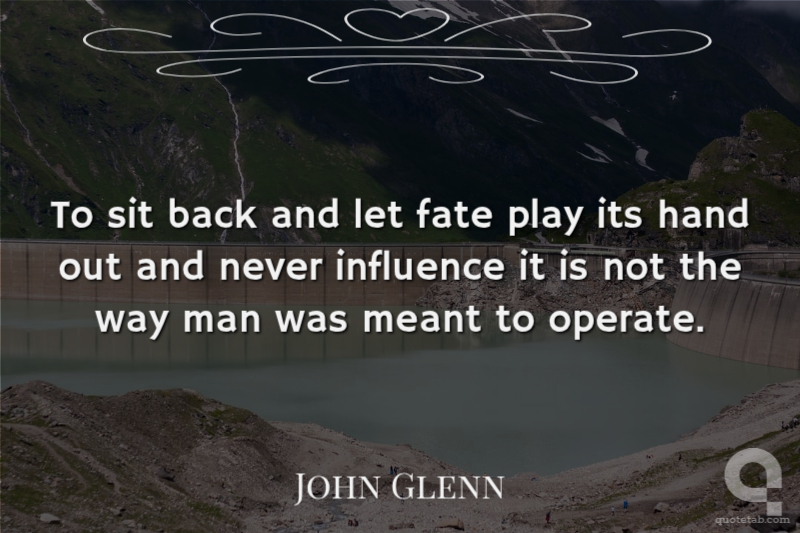 To sit back and let fate play its hand out and never influence it is not the way man was meant to operate.