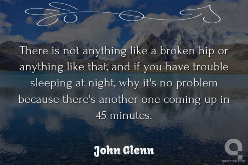 There is not anything like a broken hip or anything like that, and if you have trouble sleeping at night, why it's no problem because there's another one coming up in 45 minutes.