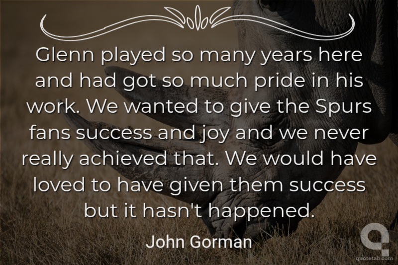Glenn played so many years here and had got so much pride in his work. We wanted to give the Spurs fans success and joy and we never really achieved that. We would have loved to have given them success but it hasn't happened.