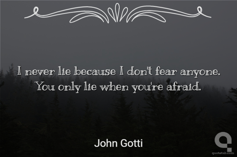 I never lie because I don't fear anyone. You only lie when you're afraid.