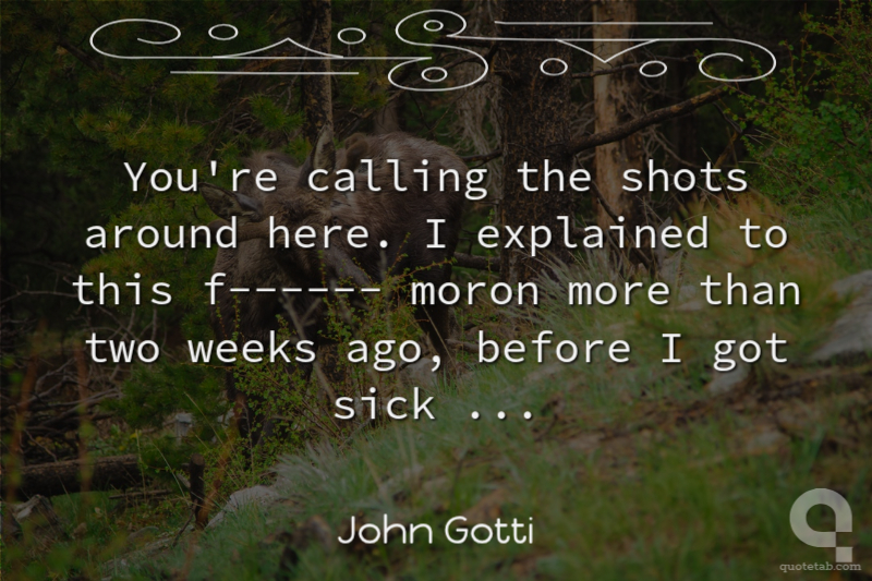 You're calling the shots around here. I explained to this f------ moron more than two weeks ago, before I got sick ...