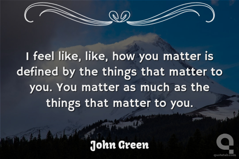 I feel like, like, how you matter is defined by the things that matter to you. You matter as much as the things that matter to you.