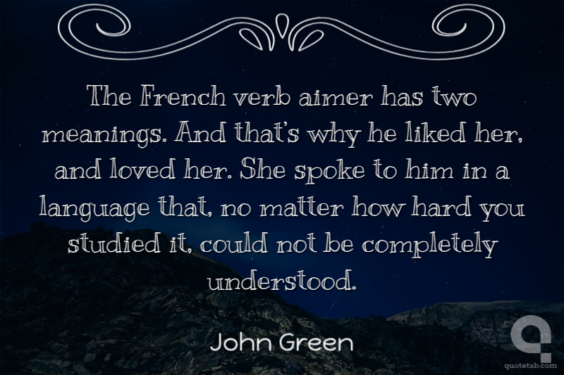 The French verb aimer has two meanings. And that’s why he liked her, and loved her. She spoke to him in a language that, no matter how hard you studied it, could not be completely understood.