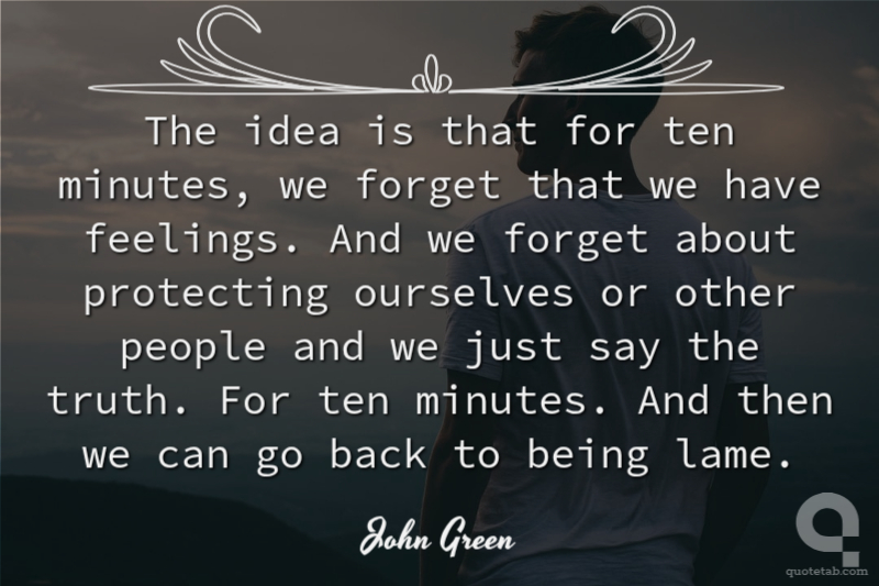 The idea is that for ten minutes, we forget that we have feelings. And we forget about protecting ourselves or other people and we just say the truth. For ten minutes. And then we can go back to being lame.