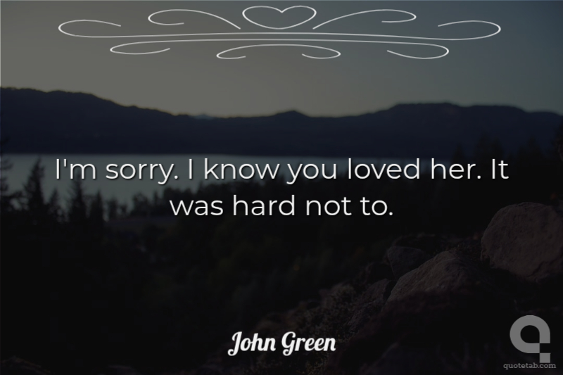 Oh, God, Alaska, I love you. I love you,' and the Colonel whispered, 'I'm so sorry, Pudge. I know you did,' and I said, 'No. Not past tense.
