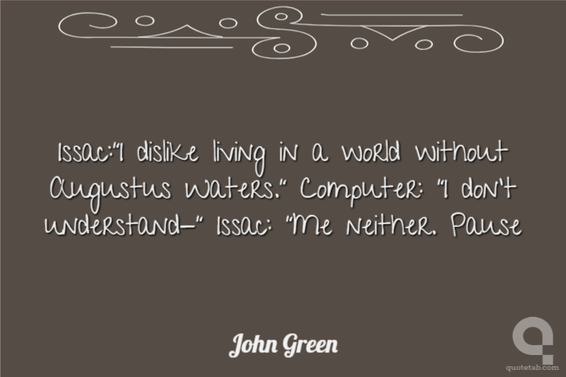 Issac:"I dislike living in a world without Augustus Waters." Computer: "I don't understand-" Issac: "Me neither. Pause