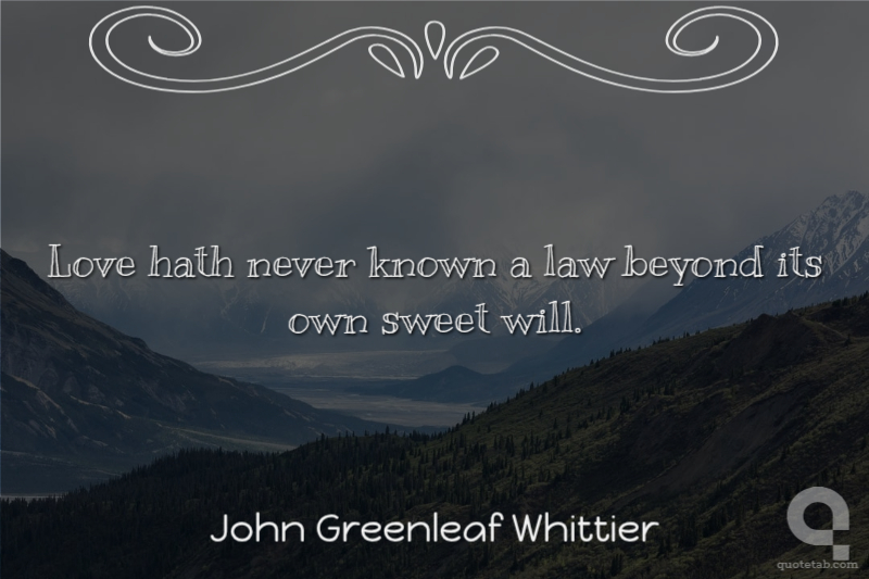 John Greenleaf Whittierwas an American Quaker poet and advocate of the abolition of slavery in the United States. Frequently listed as one of the Fireside Poets, he was influenced by the Scottish poet Robert Burns. Whittier is remembered particularly for his anti-slavery writings as well as his book Snow-Bound...