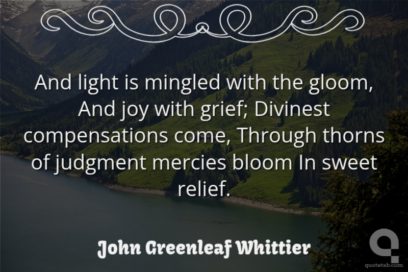 And light is mingled with the gloom, And joy with grief; Divinest compensations come, Through thorns of judgment mercies bloom In sweet relief.