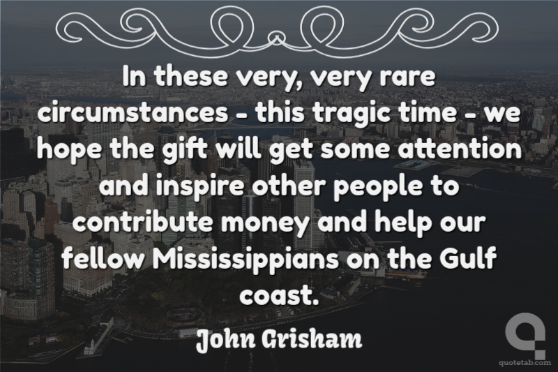 In these very, very rare circumstances -- this tragic time -- we hope the gift will get some attention and inspire other people to contribute money and help our fellow Mississippians on the Gulf Coast,