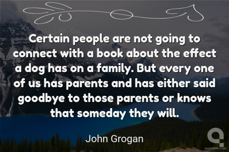Certain people are not going to connect with a book about the effect a dog has on a family. But every one of us has parents and has either said goodbye to those parents or knows that someday they will.