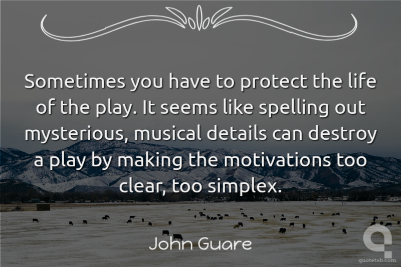 Sometimes you have to protect the life of the play. It seems like spelling out mysterious, musical details can destroy a play by making the motivations too clear, too simplex.