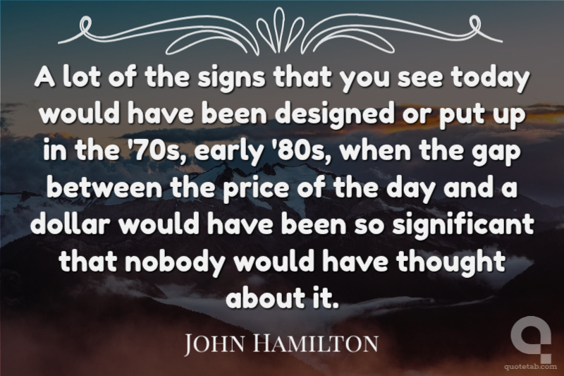 A lot of the signs that you see of today would have been designed or put up in the '70s, early '80s, when the gap between the price of the day and a dollar would have been so significant that nobody would have thought about it.