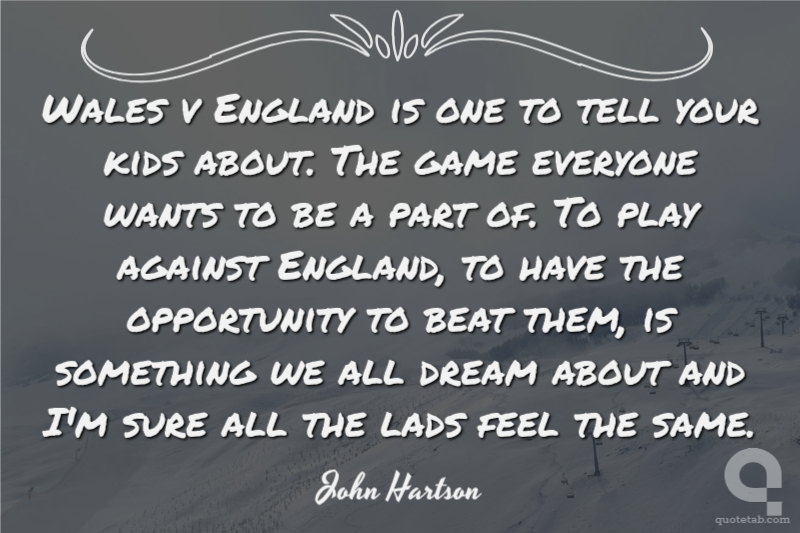 Wales v England is one to tell your kids about. The game everyone wants to be a part of. To play against England, to have the opportunity to beat them, is something we all dream about and I'm sure all the lads feel the same.