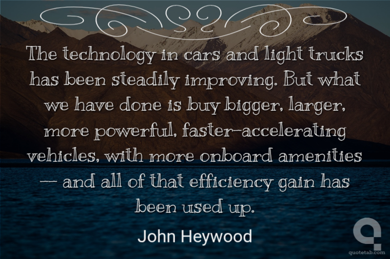 The technology in cars and light trucks has been steadily improving. But what we have done is buy bigger, larger, more powerful, faster-accelerating vehicles, with more onboard amenities -- and all of that efficiency gain has been used up.
