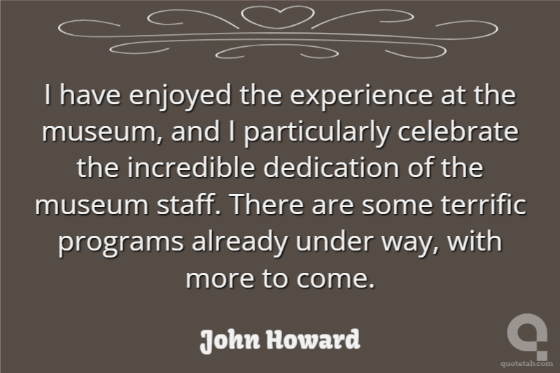 I have enjoyed the experience at the museum, and I particularly celebrate the incredible dedication of the museum staff. There are some terrific programs already under way, with more to come.