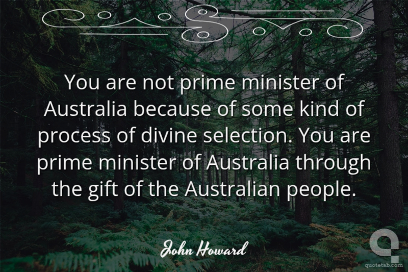 You are not prime minister of Australia because of some kind of process of divine selection. You are prime minister of Australia through the gift of the Australian people.