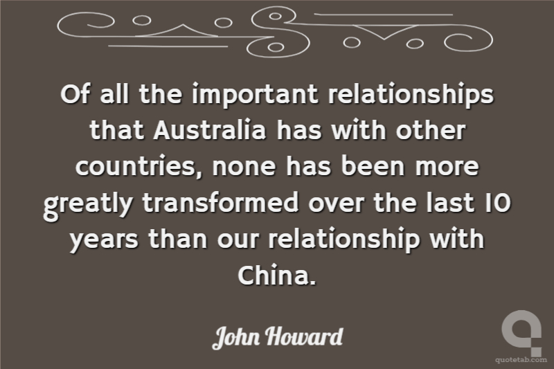 Of all the important relationships that Australia has with other countries, none has been more greatly transformed over the last 10 years than our relationship with China.