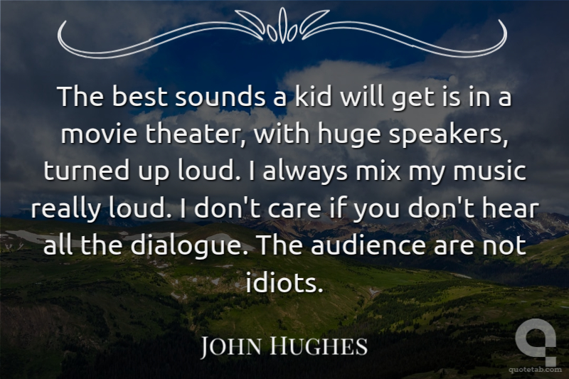 The best sounds a kid will get is in a movie theater, with huge speakers, turned up loud. I always mix my music really loud. I don't care if you don't hear all the dialogue. The audience are not idiots.
